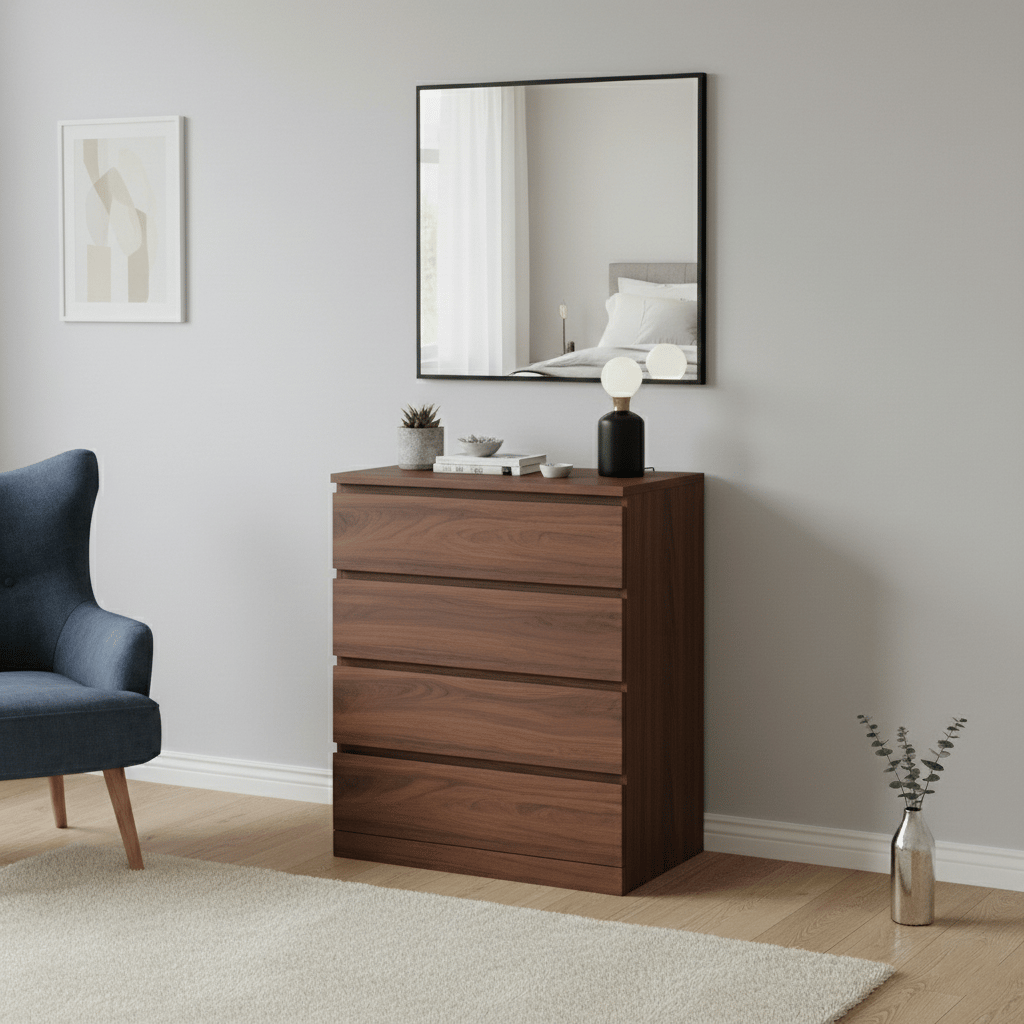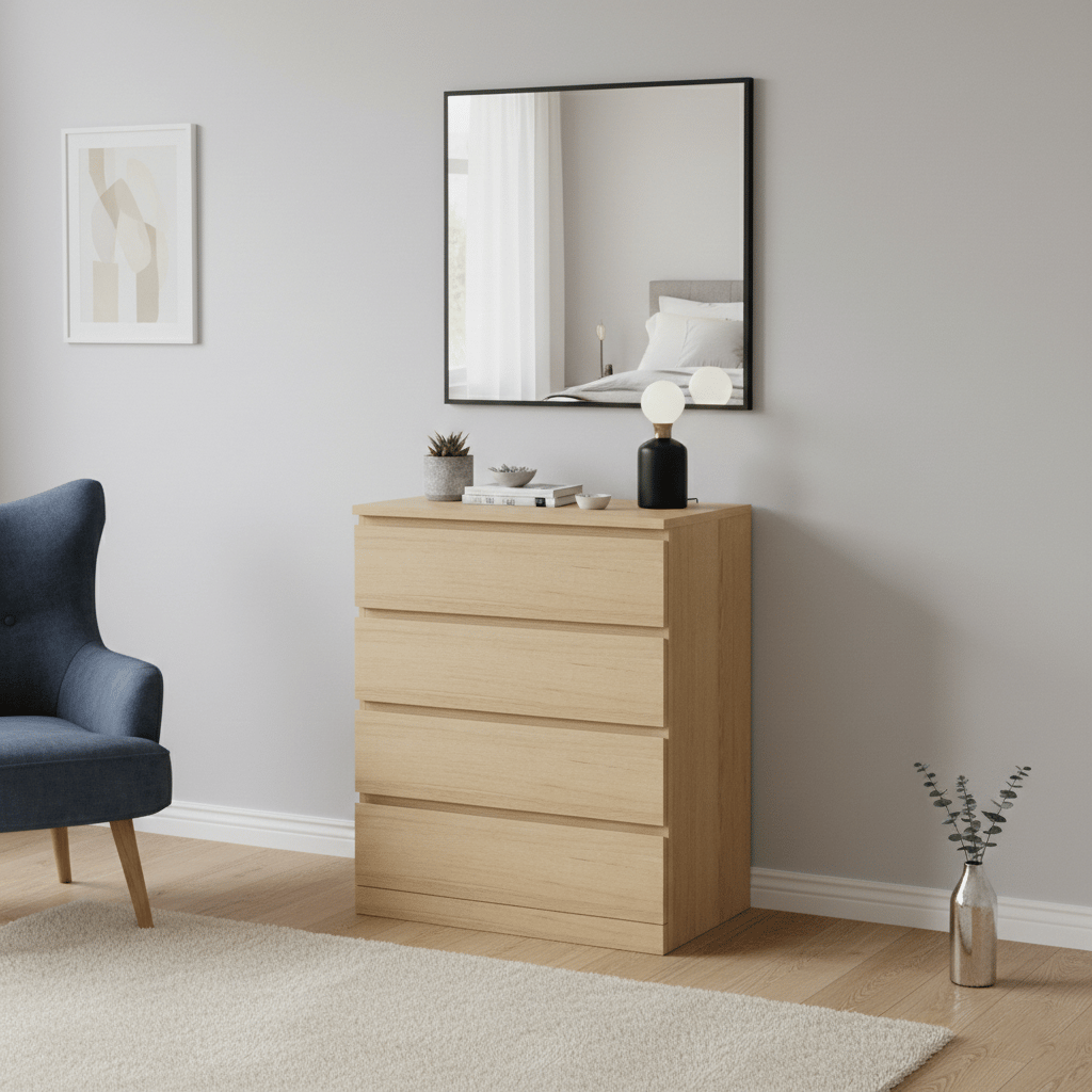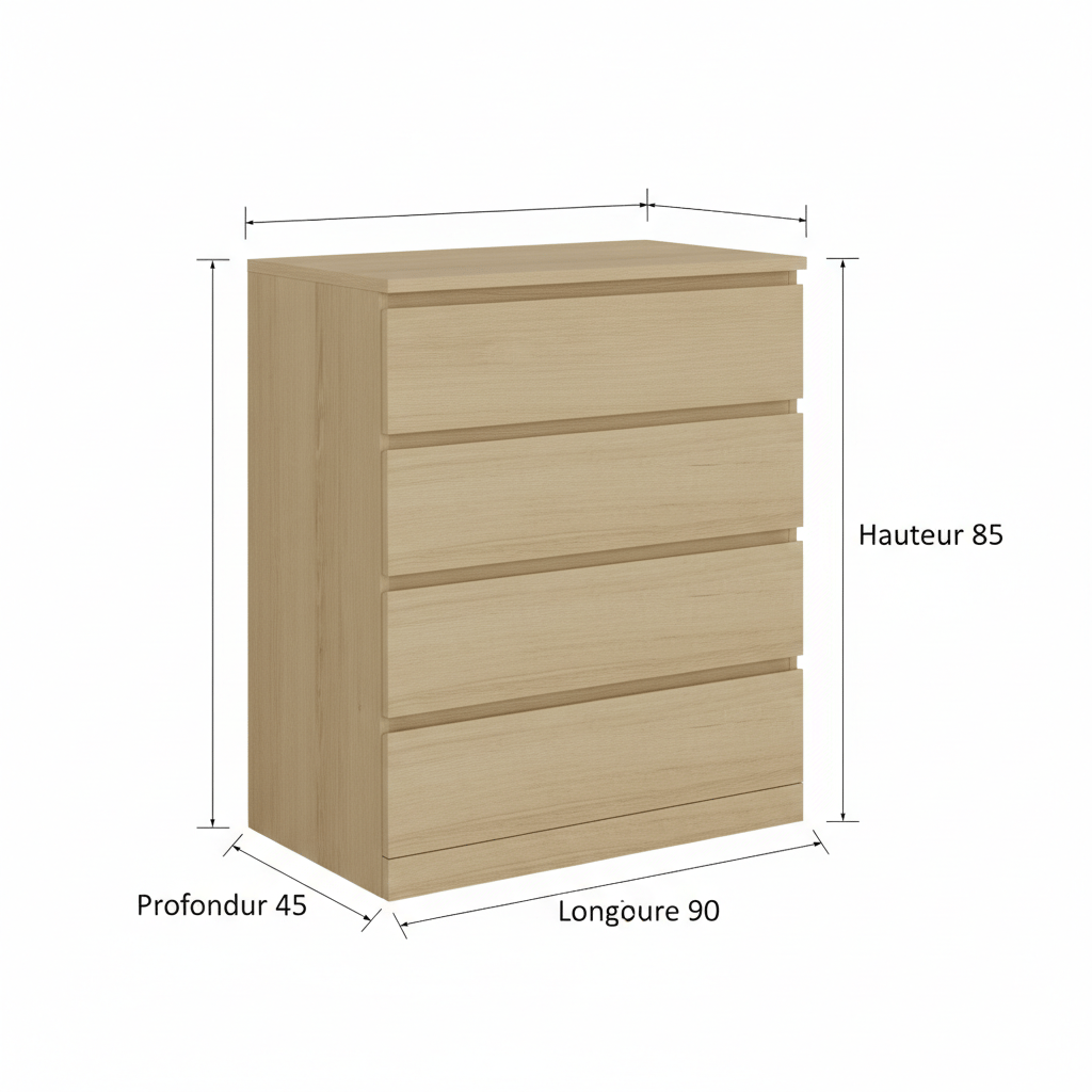 Grand Volume de Stockage : Ses quatre tiroirs profonds permettent d'organiser facilement les vêtements, le linge de maison ou les documents.