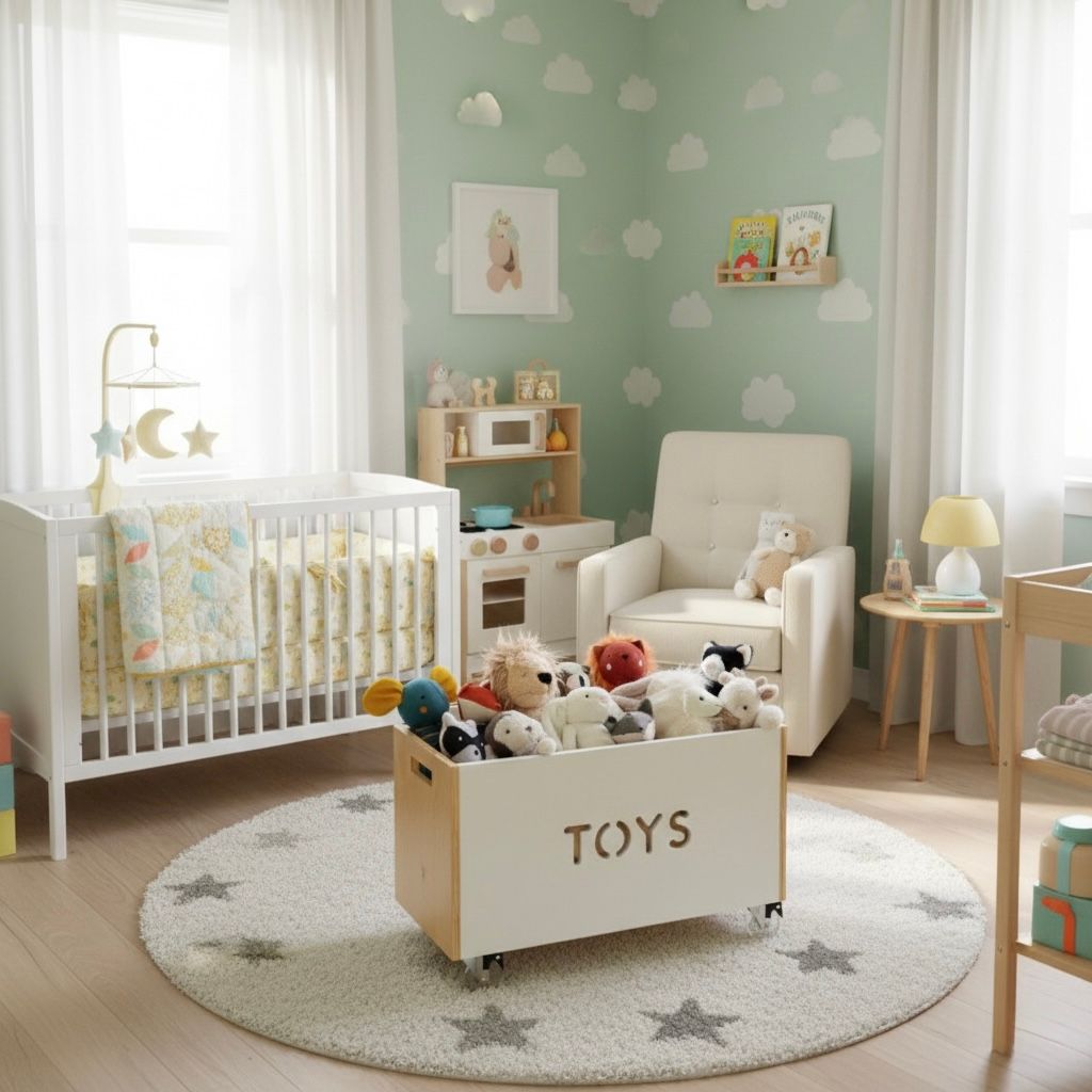 Conçue pour s'intégrer discrètement à côté de la table à langer ou du lit, cette station offre une solution de stockage robuste et sécurisée pour les couches, produits de soin et vêtements de rechange.